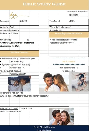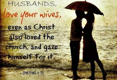 1. How do you define and what is your attitude toward loving your wives as Christ loves the church? Give examples of sacrificing, protecting, providing (not just financially), acknowledging, supporting and loving her as you do yourselves.