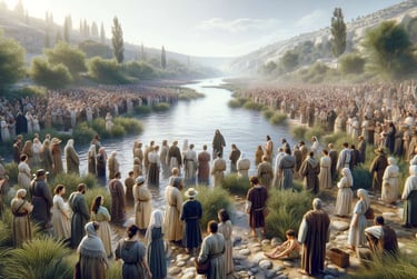 24 Then the Pharisees who had been sent 25 asked him, “If you aren’t the Messiah or Elijah or the Prophet, what right do you have to baptize?” 26 John told them, “I baptize with water, but right here in the crowd is someone you do not recognize. 27 Though his ministry follows mine, I’m not even worthy to be his slave and untie the straps of his sandal.” 28 This encounter took place in Bethany, an area east of the Jordan River, where John was baptizing. 29 The next day John saw Jesus coming toward him and said, “Look! The Lamb of God who takes away the sin of the world! 30 He is the one I was talking about when I said, ‘A man is coming after me who is far greater than I am, for he existed long before me.’ 31 I did not recognize him as the Messiah, but I have been baptizing with water so that he might be revealed to Israel.” 32 Then John testified, “I saw the Holy Spirit descending like a dove from heaven and resting upon him. 33 I didn’t know he was the one, but when God sent me to baptize with water, he told me, ‘The one on whom you see the Spirit descend and rest is the one who will baptize with the Holy Spirit.’ 34 I saw this happen to Jesus, so I testify that he is the Chosen One of God.”